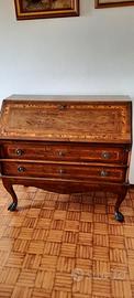 Ribalta secretaire Luigi XVI elegantemente intarsiata in legno pregiato con 4 cassetti interni e 3 cassetti esterni . Il mobile è in buoni condizioni con una struttura robusta senza tarlo . Dimensioni: lunghezza 105; larghezza 100; profondità 50 cm .Ritiro dall’acquirente pagamento alla consegna