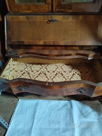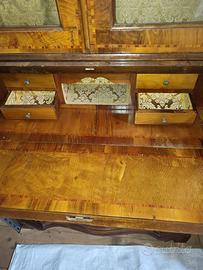 Ribaltina del '700 intarsiata e foderata all'interno, compresi i cassetti, con stoffa antica