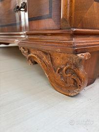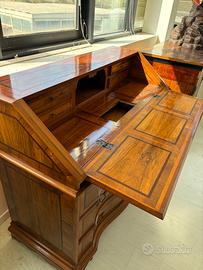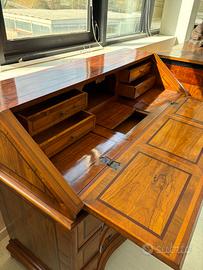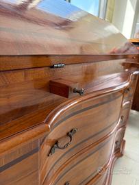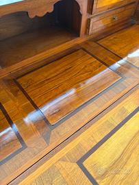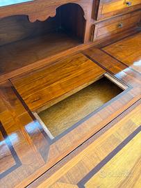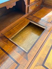 Ribaltina in legno olivo, palissandro e noce con segreto. Consigliabile trattamento anti tarlo.