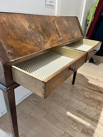 ribaltina segretarie d'epoca con 4 cassettini, 2 ripiani interi e 2 cassetti interni , in radica, chiavi in argento