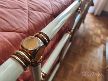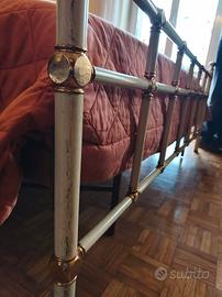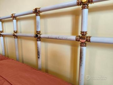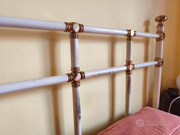 Vendo struttura letto matrimoniale in ferro battuto, risalente agli anni '70. Questo pezzo unico, dal fascino intramontabile, porterà un tocco di eleganza retrò alla vostra camera da letto. Dettagli: Materiale: Ferro battuto massiccio e resistente. Epoca: Anni '70 (circa 50 anni). Condizioni: La struttura è solida e funzionale, ma presenta alcuni segni del tempo, come visibile nelle foto. Questi difetti, lungi dal sminuirne il valore, ne accrescono l'autenticità e raccontano la sua storia. Prezzo: 69 euro! Un vero affare per un pezzo di storia. Misura: Matrimoniale. Perché sceglierla: Unica: Un pezzo raro e introvabile, che si distinguerà dalle solite strutture letto moderne. Resistente: Realizzata in ferro battuto, questa struttura è costruita per durare nel tempo. Elegante: Il design classico e raffinato si adatterà a qualsiasi stile di arredamento. Prezzo accessibile: Un'occasione d'oro per portarsi a casa un pezzo di design a un prezzo incredibile. Nota: La struttura viene venduta così com'è. Non è incluso il materasso e la rete. Il ritiro è a carico dell'acquirente.