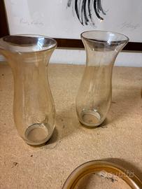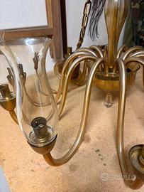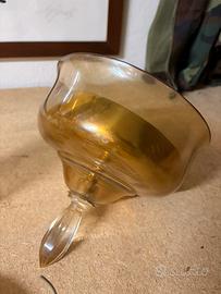 Disponibili braccia, paralumi / coprilume e calotta inferiore del lampadario De Majo in vetro di Murano. Sono artigianali e originali degli anni 70 con i classici segni del tempo. Il vetro è trasparente tendente al giallo oro. I paralumi misurano circa 18 cm di altezza per diametro di 7 cm. PREZZO 30 EURO CADAUNO.