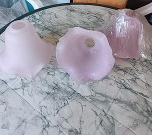 Il paralume di ricambio è in vetro satinato dipinto rosa a forma di fiore. Adatto a tutte le appliques e le lampade in ottone e in ferro . Adatto per portalampade con attacco E14 ed E27.