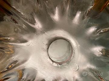 Paralume da lampadario in vetro di Murano. Dimensioni visibili in foto: diametro circa 22 cm. E’ presente un piccolo difetto praticamente invisibile (e completamente invisibile una volta montato).