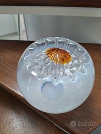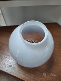 Vendo per inutilizzo, vetro soffiato trasparente, bianco lattice sfumato,con finale tipo spremiagrumi lavorato con macchia color ocra Usato per lampadari di produzione Mazzega Murano . Per Appliques/Lampade Mazzega/Toni Zuccheri di Produzione Italiana (Murano). Misure: diametro attacco interno 7 cm, diametro esterno 9 cm. Diametro 15 cm. Altezza 16 cm. Prezzo leggermente trattabile.