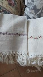 Offro in vendita capi realizzati a mano, ricamati finemente e realizzabili anche su richiesta con loghi personalizzati o figure con le iniziali, simboli religiosi o altre realizzazioni specifiche. Questo set in vendita qui è composto da un gruppo di 12 federe a 300 € ( oppure 35 € prese singolarmente) ed un gruppo di 6 asciugamani a 210 € (oppure singolarmente 40 €)