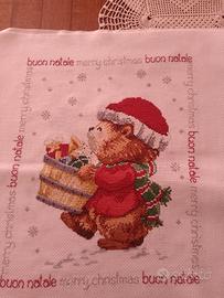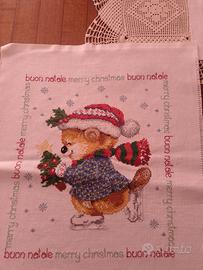 3 ricami a punto croce su tela Aida,misure 37x28 cm.,soggetto orsetti di Natale