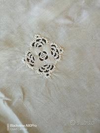 tovaglia da tavola in lino bianco con 12 tovaglioli ricamata. forma quadrata con angoli arrotondati centimetri 150 per 150
