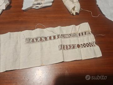 Si realizzano lavorazioni di ricamo a mano su lino (centrini, runner, tovagliette, lenzuolini, tendine,...).