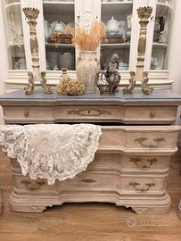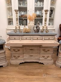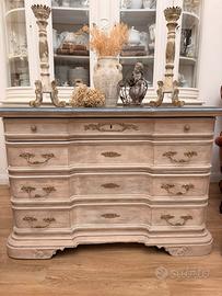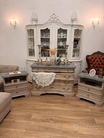 Ricercato trittico (cassettone con secrete' e 3 cassetti molto spaziosi + 2 comodini con piano interno esposto e 2 cassetti). Eseguito rigorosamente a patina antica tramite l'uso sapiente di prodotti naturali a base di caseina e ultimato a cera e pigmenti. Il trittico è in legno massello, colore come da foto: piano in color grigio e patina ceruse' e corpo nei colori caldi del sabbia, ricchissimo di sfumature. Stile: French country, si adatta benissimo in ambienti shabby chic, provenzali, classici e chi prediligie uno stile da casale. Possibilità di consegna a domicilio per zone di Napoli e provincia (gratis). Trasporto in tutta Italia I contattami in privato per maggiori informazioni. Arredamenti, arredamento, camera da letto, Cassettone, Como' e comodini, mobili, mobile. Prezzo leggermente trattabile
