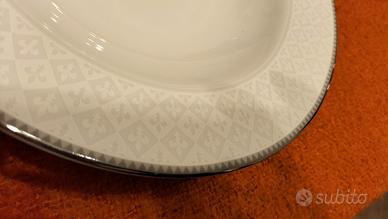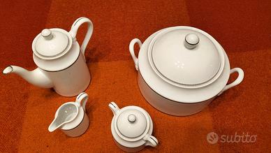 Servizio piatti in porcellana di Richard-Ginori così composto: Piatti piani 12 Piatti fondi 12 Piatti frutta 12 Zuppiera e coperchio 2 Zuccheriera e coperchio 2 Lattiera 1 Tazzine 12 Piattini 12 Teiera e coperchio 2 Servizio mai utilizzato, negli scatoli originali. Acquistato a 1100 euro. Per ulteriori foto basta richiederle se interessati.