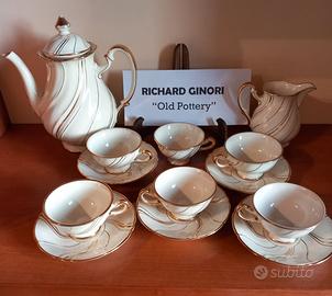 Servizio da caffè Richard Ginori per 6 persone in porcellana con disegno in oro zecchino a "spirale" dipinto a mano.