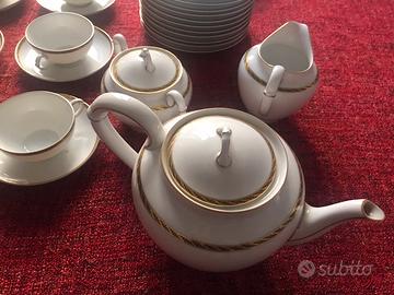 Vendo servizio completo da the e dolci mai usato. Richard Ginori, bianco bordato oro e blu scuro. 12 tazzine con piattini, teiera, lattiera, zuccheriera , 12 piatti da dolce e due piatti da portata.