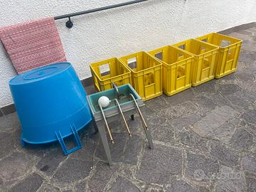 Come da titolo per dismissione cantina si vende: - Riempitrice manuale per bottiglie di vino - 5 cassette rigide da 12 bottiglie l’una - mastellone grande, ideale per lavaggio bottiglie Ritiro a mano zona Rimini Per realizzo €70