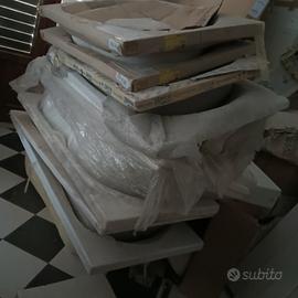 per chiusura attività si svende la merce rimasta come vasche da bagno diverse misure, piani in marmo per mobile bagno, box doccia e tanto altro. inoltre si svende la vetrina, gli sgabelli, come in foto.