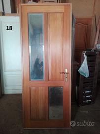 porta n.17 in legno massello di castagno verniciata nera con telaio vernice trasparente, vetro con griglia oro, senza serratura e maniglia misure complete di telaio 215x86x11 prezzo 490 euro;