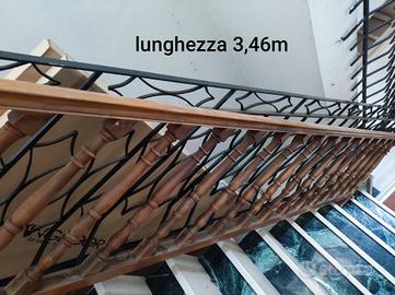 Ringhiera in legno per scala interna, due pezzi, decoro colonna. Da lucidare, in perfette condizioni. Una è 2.80m l x 1m h/ la seconda è 1.25h (inclinazione) x 3,46l x 1m in arrivo