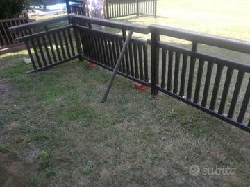 Vendesi n. 2 ringhiere usate in legno per balconi. Una misura 3.40 di lunghezza ed è in ottimo stato solo da carteggiare e dare impregnante, L'altra misura 4 mt di lunghezza e bisogna fare dei lavori per assemblarla, in quanto rimossa malamente, ed è in buon stato. Prezzo per le due ringhiere € 180. Il prezzo sul nuovo si aggira sui 120/130 €/ml.