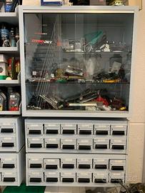 Ripiani con vetrinette e cassetti Officina