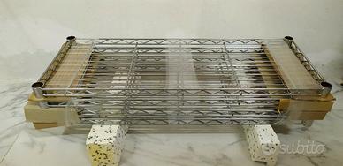 Vendo 4 ripiani per scaffale libreria metallico con tubi montanti con Ø 25 mm, usato in ottime condizioni, in metallo cromato.