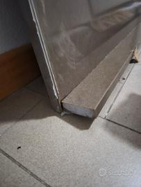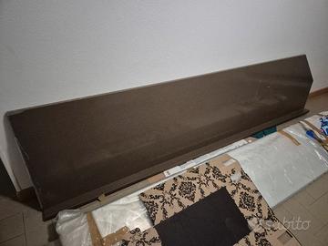 Vendo ripiano di marmo marrone sagomato come in foto, da ritirare in loco. Lunghezza lato lungo 146 cm (già dotato di profilo h 6 cm), profondità 60 cm, spessore 2 cm. Leggermente sbeccato in un angolo come in foto. Ideale per tagli e recuperi su dimensioni inferiori.