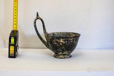 Vendo riproduzione artistica di Kyathos Etrusco in bucchero n. 15 nero con un manico e faccia alla fine del manico, questi vasi venivano prodotti in etruria dalla nel VII secolo a. C. circa. Fatte a mano con cottura speciale per dare il colore nero, pezzi unici diversi uno dall'altro.