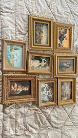 8 quadretti con le riproduzioni di opere famose con cornici color oro