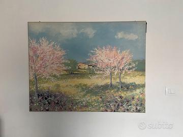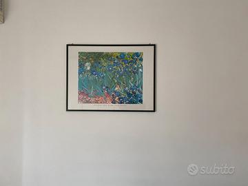 Riproduzioni su tela. L. 120 cm. h. 90 cm. Telaio legno, tela cotone e confezionamento di ottima qualità. Due ganci. Sono integri; colori un po' sbiaditi a causa del tempo. La stampa di Les Irises di van Gogh (circa cm. 90x75) è invece cartoncino incorniciato a regola d'arte con aggiunta di vetro: come nuovo.
