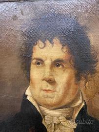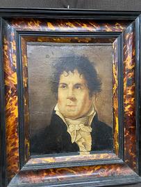 Ritratto in olio su tela d’epoca primo Ottocento dell’artista e noto scultore pescarese Giovanni Antonio Santarelli la tela misura 25x30 la preziosa cornice in tartaruga misura 40x45