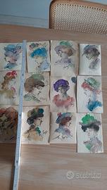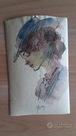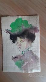 Bozzetto di ritratto di donna, tecnica mista, realizzato sul retro di carta da parati.