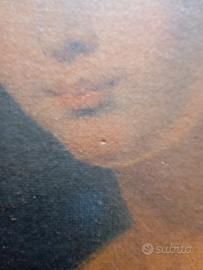 Questo ritratto è una stampa che rappresenta un celebre dipinto del 1795 del pittore francese Jacques -Louis David , Questo quadro è abbastanza vecchio e per questo in alcuni punti presenta delle schiariture superficiali come delle macchie e in altri punti mancano piccoli frammenti del colore come ho mostrato. Nelle foto questi particolari sono molto ingranditi ,ma a guardarlo da vicino sono meno evidenti. La cornice di legno è in ottimo stato ed è firmata A W .DEVIS Le misure sono 45 x 55 cm .