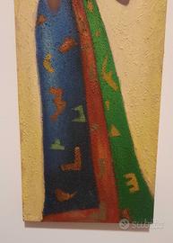 Quadro su tela con tecnica mista che raffigura un bellissima Donna Africana con una stupenda gonna colorata e un turbante.