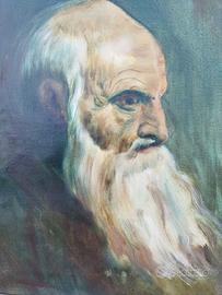 Con barba lunga bianca - Primo novecento - Olio su tela in cornice argentata - Misure con cornice 65 X 55--