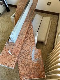 Vendo, causa ristrutturazione casa, marmi per realizzazione di camino, ideali per chi desidera creare o completare un camino con materiali di qualità ed eleganti finiture. Il lotto è composto da: 2 pezzi orizzontali di appoggio in marmo Rosso di Verona (dimensioni: cappello 1400 x 190 mm; base 1600 x 280 mm); 2 colonne verticali in marmo bianco bucciardato (dimensioni 770 h x 200 mm); 1 elemento orizzontale superiore in marmo bianco bucciardato; 2 basamenti in marmo bianco bucciardato (dimensioni 370 h x 480 mm). Materiali solidi e in ottimo stato, pronti per essere installati. Si precisa che l’anima interna del camino non è compresa nella vendita; la prima foto è pubblicata solo per dare un’idea del risultato finale del camino una volta montato. Ritiro in loco.