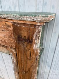Rivestimento vintage in legno laccato per camino. Da applicare come cornice su un caminetto esistente oppure per semplice decoro da parete, molto scenografico. Le misure esterne sono: larghezza 101,5 cm x altezza 100 cm. Misure interne: 58,5 cm x altezza 76 cm. Per altre info contattami pure. Francesco.