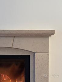 Rivestimento per camino monoblocco o inserto, modello toscana. Marmo gillo di istria sabbiato con trattamento protettivo.