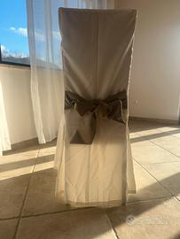 Rivestimento sedie NUOVO, realizzato misto seta-raso, completo di pregevole fiocco posteriore regolabile con funzione di regolazione calzata, realizzate artigianalmente sartorialmente. Ideali per impreziosire e valorizzare sedie per eventi e cerimonie eleganti. Disponibilità 50 pezzi. Vendo per mancato realizzo progetto. Prezzo: 14 euro al pezzo.