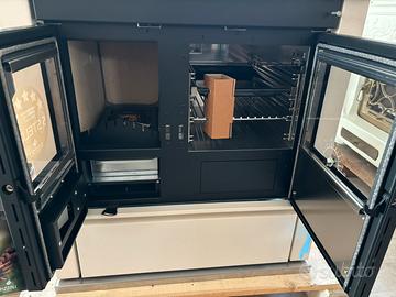 Cucina a legna RIZZOLI S 80 , colore sabbia, scarico fumi sup e post dx diametro 130 mm,piastra in acciaio piu cerchi in ghisa, corrimano anteriore inox, camera di combustione in refrattario, forno in acciaio inox con vassoio su guide telescopiche.Potenza nom 10,2 kw,rendimento 80,8% , 5 stelle, peso 205 kg. Prezzo 2790 €iva compresa , franco ns magazzino. Disponibile.