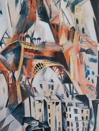 Stampa artistica in alta definizione e di grande formato 100x70 del maestro del modernismo classico e del cubismo orfico Robert Delaunay, raffigurante la Tour Eiffel.