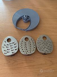 Robot da cucina philips con tre lane per grattugiare, due per affettare, una kama per triturare un accessorio per impastare e uno per montare più boccale frullatore