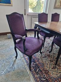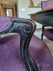 Proponiamo esclusivo set sala da pranzo firmato Roche Bobois, collezione Volutes, caratterizzata dal raffinato stile classico francese con finitura artigianale. Il set comprende: Tavolo rettangolare estensibile: Dimensioni 160/240×120 cm. Perfetto per ospitare fino a 10-12 persone. Sedute: 2 capotavola (poltroncine) e 4 sedie coordinate. Materiali: Struttura in legno massiccio con finitura patinata e rivestimenti in pregiato velluto. Condizioni: Oggetto di altissimo pregio, valore a nuovo di circa 22.000 €. Stato conservativo eccellente. Logistica: Il trasporto è a carico dell'acquirente. Possibilità di concordare la consegna al piano strada. Formula "visto e piaciuto". Un’opportunità rara per arredare con l’eleganza senza tempo del design Roche Bobois a una frazione del prezzo di listino.