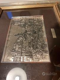 Quadro in Argento 925 della serie Roma Sparita, che raffigura Piazza Barberini. Cornice in legno argentato con misure: L 55 cm H 45 cm Profondità 3 cm