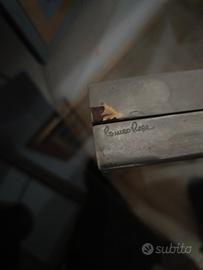 Vendo consolle in acciaio ed ottone con cristallo fumè ,originale degli anni '70, marchiata ROMEO REGA. accompagnata da porta sigari, accendino da tavolo, lampada da tavolo e porta foto, tutti dello stesso materiale, e del grande designer . Ho anche altri pezzi a casa , da Willy rizzo a Kartell , diversi pezzi di modernariato e arte figurativa contemporanea . prezzi trattabili, venduti anche separatamente.