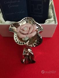 Rosa argento. Marcello Giorgio, confezione originale, mai esposto. Idea regalo. Bouquet fiori argento e smalto