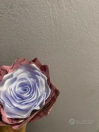rosa eterna lilla in raso con fiocco rosa confezione rosa personalizzata ideale per regali