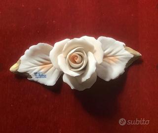 Elegante rosa in porcellana di Capodimonte, misure cm. 11 x 4, altezza circa cm. 2.