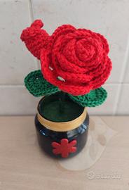 Rosa rossa all'uncinetto