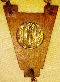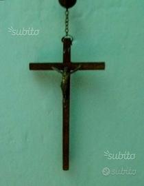 Antico rosario da muro in legno , 58 grani diametro 2 cm, croce 15/ 8 cm, triangolo 4 / 5 cm lunghezza corona 60 cm x 2 + 47 cm triangolo e croce.