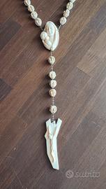 Rosario capoletto fatto a mano in Italia con grani di marmo di 3 cm. 1,67 m di lunghezza, è perfetto per essere esposto a parete o appeso dietro il letto: ingombro (come da foto) 140 x 40 cm. Peso: 1 kg. Colore: bianco - beige. NO spedizione.