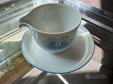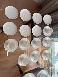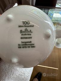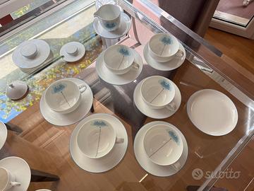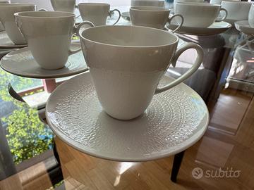 Gruppo di tazzine e piattini Rosenthal composto da: 8 tazzine e piattini da caffe completi + 7 piattini senza tazzine ROSENTHAL CENTURY BY TAPIO WIRKKALA 6 tazze da the con 3 piattini abbinati e con 5 piattini non abbinati, una tazza e l’interno di un coperchio sono scheggiati. 1 bric latte Studio Rosenthal originali